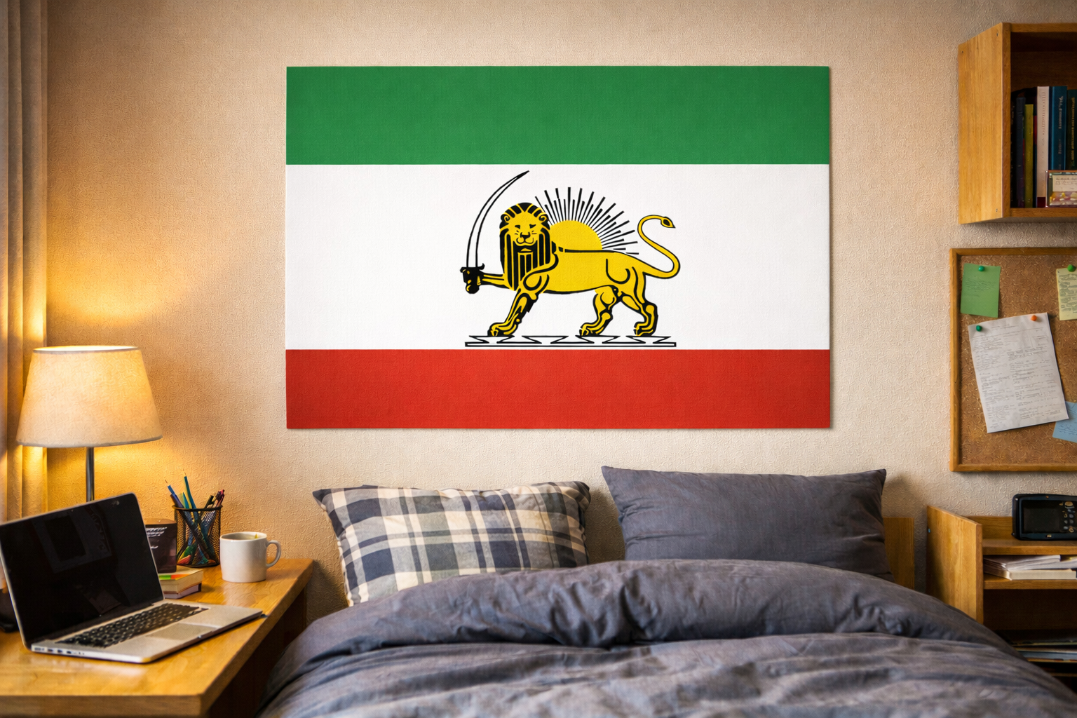 Enhance your space with this striking Iran flag poster, a high‑quality Iran national flag wall art print that celebrates the historic and cultural meaning behind the Flag of Iran. Featuring the official Iranian tricolor of horizontal green, white, and red stripes with the bold red Iran emblem centered on the white band, this Iran country flag poster delivers vivid detail and powerful visual appeal for any decor.
