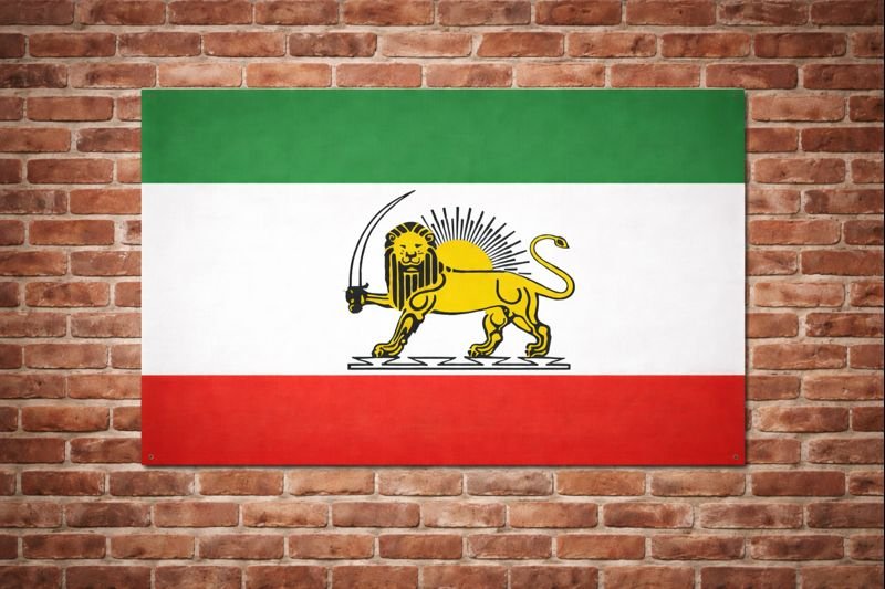The Iran flag design on this poster highlights key symbolic elements of the nation’s flag: