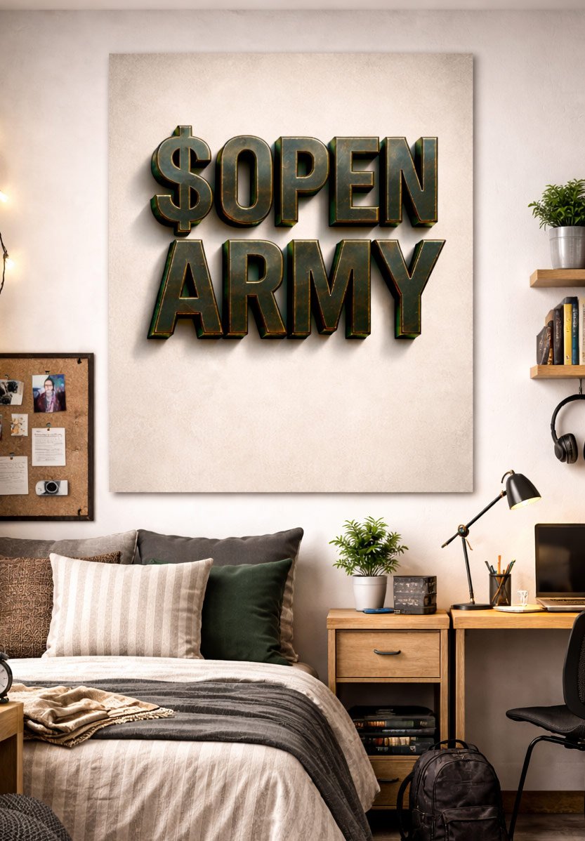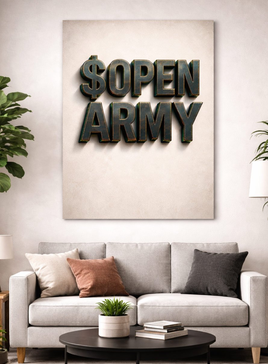 Display strength, clarity, and attitude with the Open Army Metal Text Poster, a striking piece from PicPanels.com’s “Stock Market / Wall Art – Posters” collection.